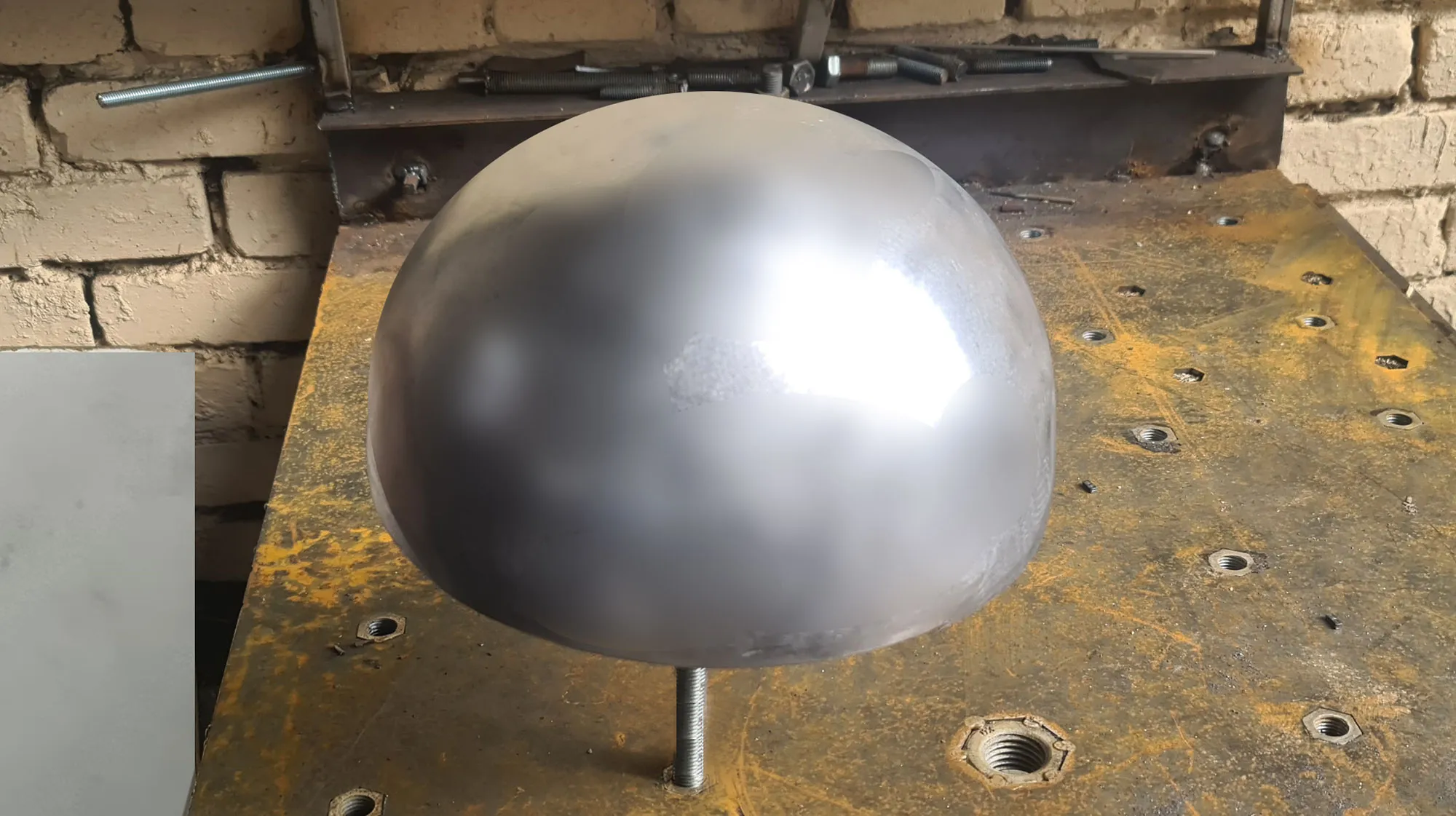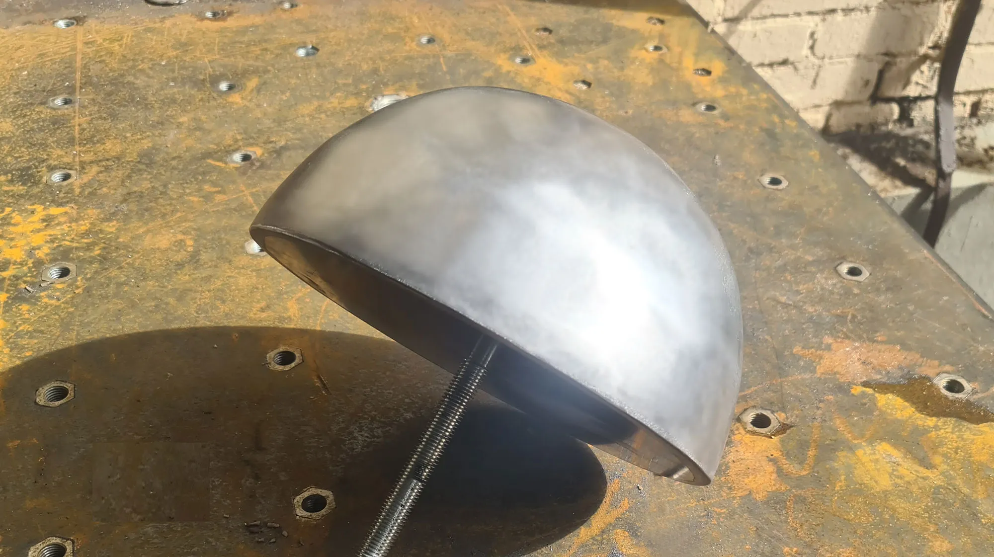 Изготовление металлической полусферы требует профессионального подхода, работать с углеродистой сталью достаточно сложно даже в специализированной компании и на современном оборудовании. Вручную же изготовить полусферу с толщиной стенки 6 миллиметров из обычной листовой стали требует немало времени и существенных трудозатрат.