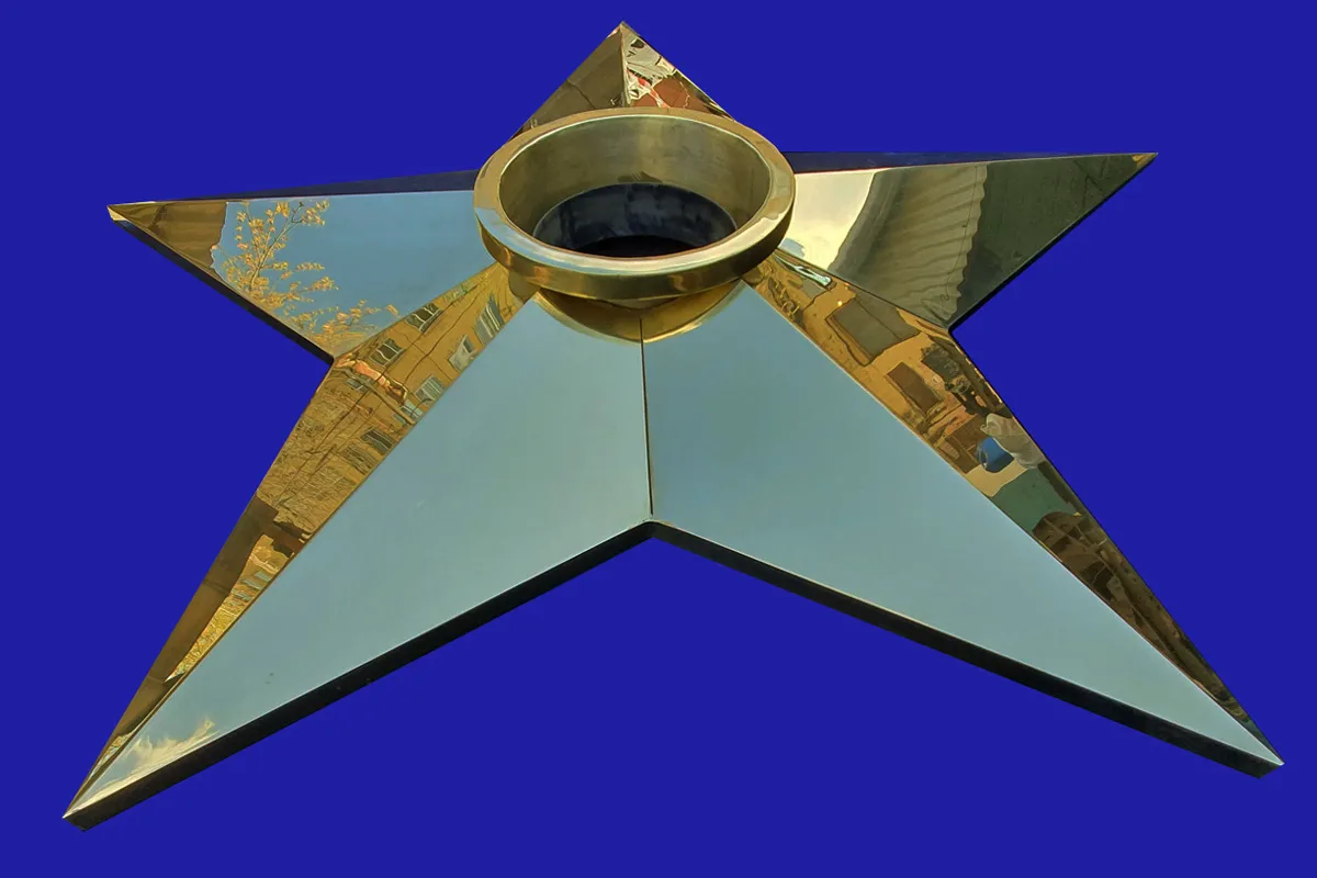 Звезда вечного огня - полированная латунь, диаметр 1500 мм. (Z-13) купить в Курильске от производителя Звезда вечного огня - полированная латунь, диаметр 1500 мм. (Z-13) фото, видео, чертежи и технические характеристики, бесплатная доставка и монтаж, заказать недорого Звезда вечного огня - полированная латунь, диаметр 1500 мм. (Z-13) доставка во все города России
